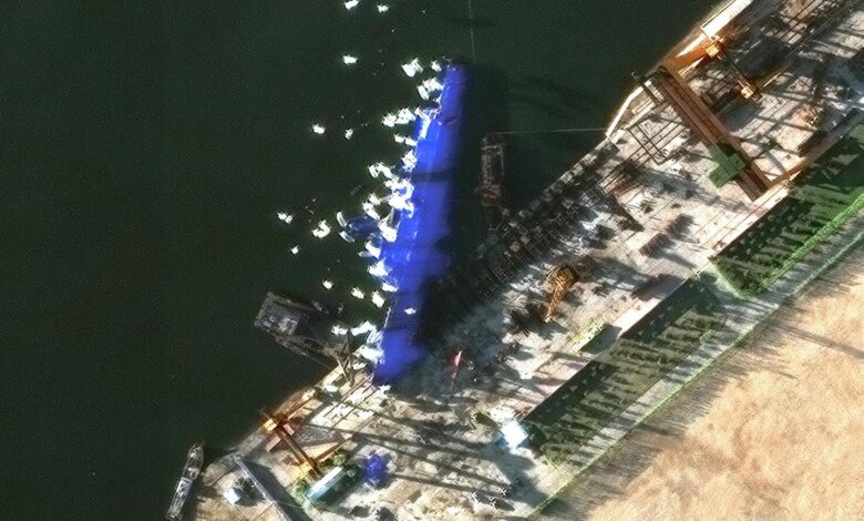 وأشار خبراء آخرون إلى أن محاولة رفع السفينة بالكامل قد تتسبب في أضرار إضافية، خاصة أن جزءا منها لا يزال عالقا في الرصيف بينما يغرق باقي الهيكل.